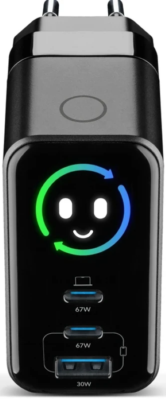 Das PowerView IQ 67W Wandladegerät gehört zur neuen Produktreihe von Cellularline, die für hohe Leistung und umfassende Kontrolle entwickelt wurde. Dank des intelligenten TFT-Displays werden Ladedaten in Echtzeit für jeden Anschluss angezeigt, darunter abgegebene Leistung, Wattzahl und Temperatur. Dies gewährleistet Transparenz und kontinuierliche Leistungsüberwachung. Zwei 67W USB-C-Anschlüsse und ein 30W USB-A-Anschluss ermöglichen effizientes Laden von Smartphones, Tablets und Laptops. Die GaN+-Technologie vereint hohe Leistung mit einem kompakten Design, während der klappbare Stecker die Tragbarkeit verbessert und das Ladegerät beim Transport schützt.