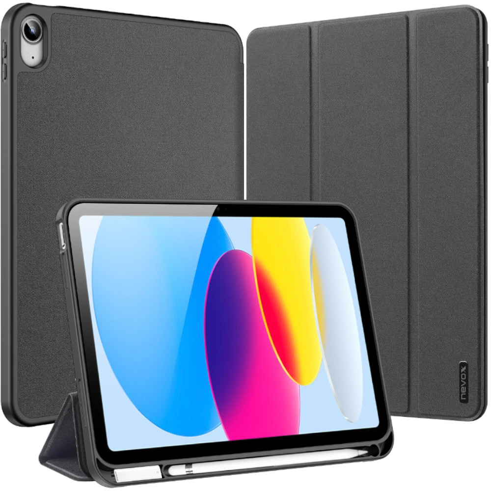 Durch die unsichtbar integrierten Magneten wird die Bedienung kinderleicht, das iPad startet nach dem öffnen der Frontklappe (Wake up Funktion) und die Schutzhülle öffnet sich nicht ungewollt.