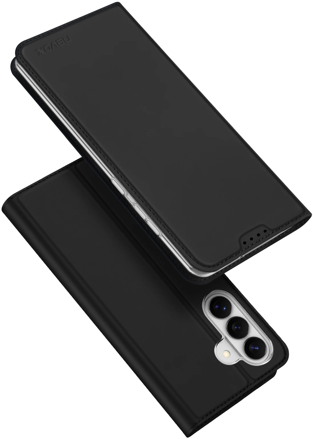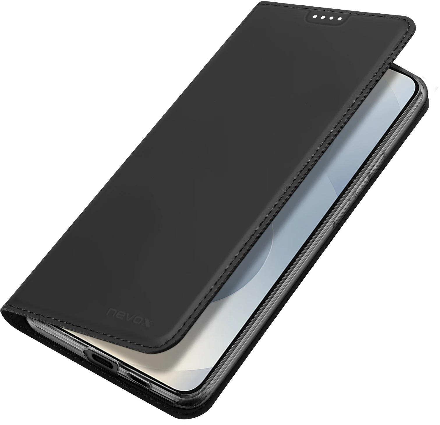 Beim Umklappen der Frontklappe wird diese ebenfalls durch die Magneten auf der Rückseite fixiert, somit ist ein bequemes Telefonieren und Bedienen sichergestellt.
